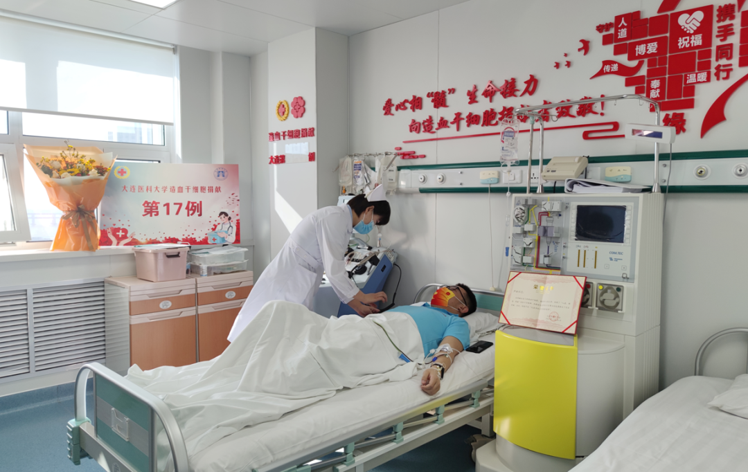 大医二院血液科为辽宁省造血干细胞移植医学中心,同时也是中华骨髓库及台湾慈济骨髓库造血干细胞采集成员单位,具有非血缘异基因造血干细胞供者的检索及采集资质。自2016年以来,配合中华骨髓库完成多例无关供者干细胞采集工作,为远在北京、上海、郑州、苏州、廊坊等地的血液病患者采集生命的火种,送去生的希望。目前已完成外周血细胞分离1000余例,年采集量近200例。