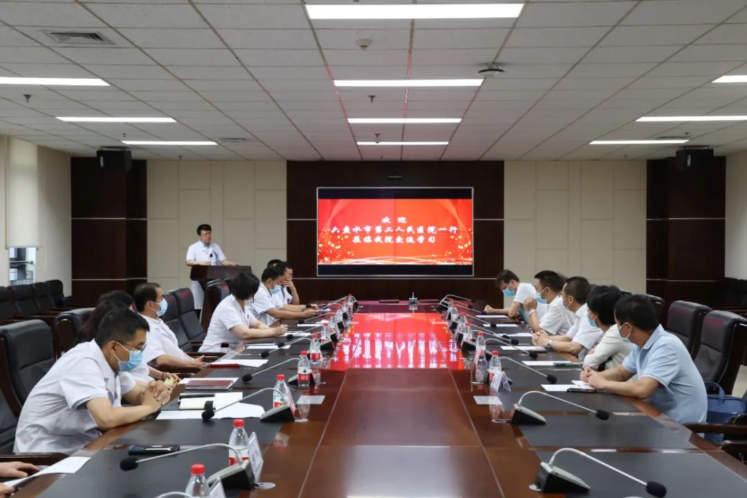 本站讯(区域医疗发展部)为将优质的医疗服务资源与合作单位共享,7月12日,由六盘水市第二人民医院院长、党委副书记林海带队,同副院长毛卫、医务科主任朱茜、心内科主任王梅、神经外科主任马志伟、院办干事顾龙富等一行6人组成的专家团队到我院进行交流学习活动并举行了合作签约仪式。我院党委书记任萍,党委副书记、院长刘志宇,党委副书记尹伟,副院长尹剑、王立明,纪委书记勇前,总会计师张艳、党政办公室主任张策、区域医疗发展部主任曲卫昆、心内科主任曲鹏、神经外科主任宋飞等人参加了会议。会议由王立明副院长主持。