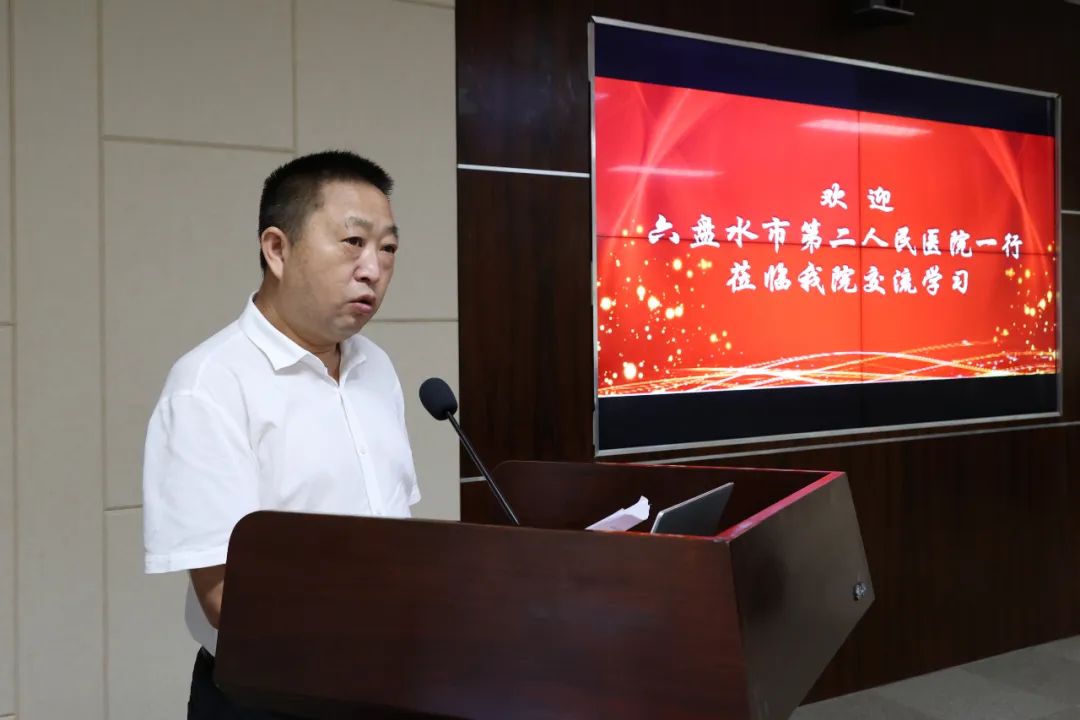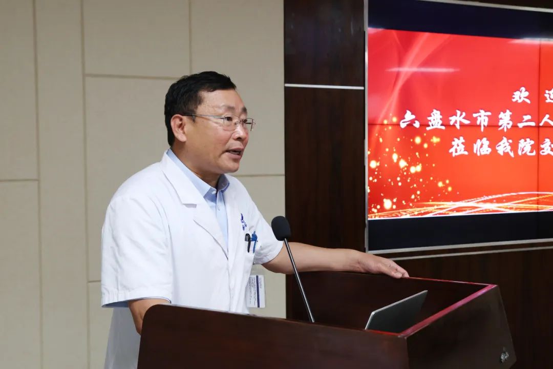 刘志宇院长在致辞中表示,大医二院与贵州有着深深的情谊,医院的发展离不开在遵义奋斗过的老专家们留下的知识、传统与文化。正是受着“前辈引领”和“红色文化”的感染,大医二院也向着高质量发展道路迈进,医院病种结构进一步优化,学科建设和人才培养作为战略决策的重点向内涵式发展迈进,肝、肾、心、肺等移植从质量与数量上均显著提升。此次六盘水市第二人民医院正式加入大医二院医疗联盟成员单位,这是一次共同提高的机遇,也是医院高质量发展的关键节点。希望两院间通过学科建设、专科联盟、人才技术引进、科研成果转化等方向开展合作,互利共享,以共同的目标做牵引,继续传承优秀的文化内涵并结合各自医院发展特点与优势,相互汲取营养,使医院快速走向高质量发展道路。