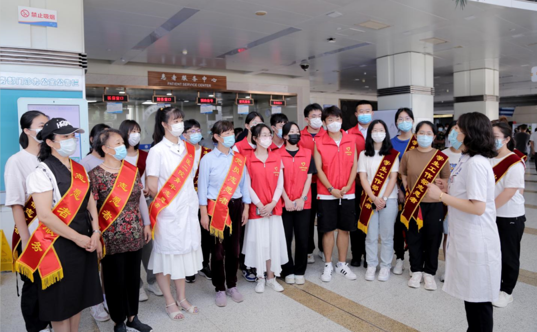 患者服务部工作人员就核酸检测流程、门诊挂号方式等内容向志愿者代表进行了培训。