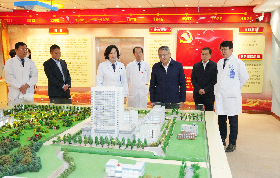 刘晓东来到医院院史馆、党史馆和临床技能教学中心,详细听取了医院历史沿革及发展情况,调研临床技能教学中心内部各个培训教室及现代化教学设备,并召开座谈会。