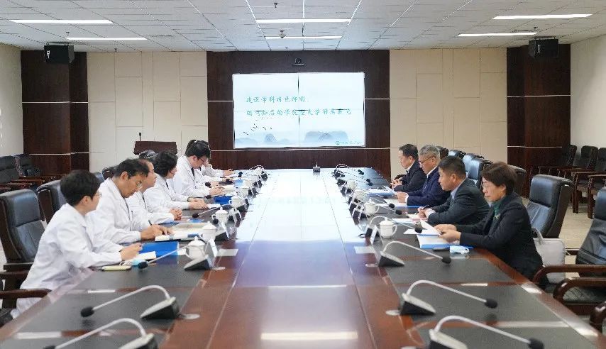 本站讯(党政办公室)10月19日下午,大连医科大学党委书记刘晓东来到我院,调研、听取医院医、教、研各项工作情况。大连医科大学党委常委、党委组织部部长郑春波,校长助理田晓峰,党政办公室主任杨晓丽以及我院领导班子陪同调研。