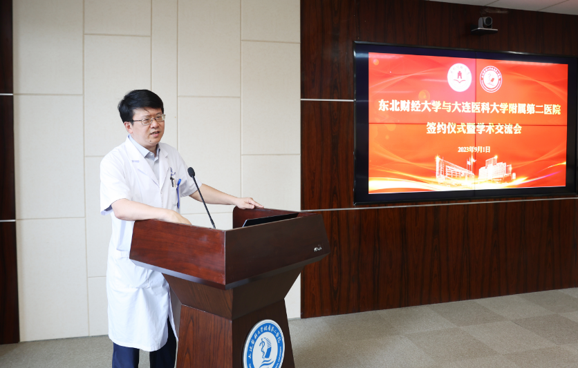 刘志宇院长介绍了我院的基本情况、发展历程及医工结合取得的成果,并高度赞扬了东北财经大学及统计学院的专业团队和实践能力。他指出,本次合作是推进大医二院和东北财经大学全面合作的第一步,是推动医校合作共赢和融合发展的重要载体,未来将充分发挥双方优势学科的强互补性,以协议签署固化合作,以项目申报落实合作,以成果共享分享合作,以人才交流巩固合作,以学术交流活跃合作,推动产学研结合、成果转化,加强医院与高校的高质量、高效率、可持续性合作,携手共进跨越新高度。
