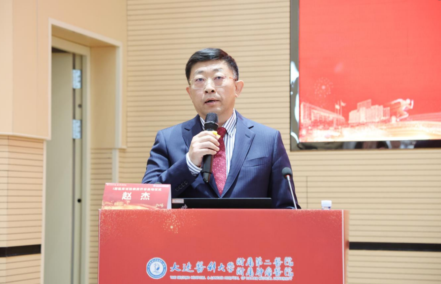 学校党委副书记、校长赵杰代表大学对出席仪式的领导、嘉宾表示热烈欢迎,对多年来关心和支持大医及附属医院建设发展的各级领导、同仁致以崇高敬意。他表示,学校在药物基础研究和临床转化应用方面有着光荣悠久历史,几代专家深耕该领域并做出了卓越贡献。作为大学附属医院,做好创新转化尤其是临床新药研发是发展新质生产力的体现,希望二院在传承好大学药学研究优势的基础上,培养学者型临床医生,做出基础和临床的交叉融合转化新业绩。他也希望二院利用多院区的平台优势,发挥专家团队的影响力,加快推进新药临床试验,围绕健康辽宁建设和学校高质量发展新突破三年行动目标任务,力争把病房建设成为国内先进的新药早期临床研究中心,全面推动和提升医院的临床研究能力和水平,推动高质量的临床研究成果产出,促进我国新药蓬勃发展。