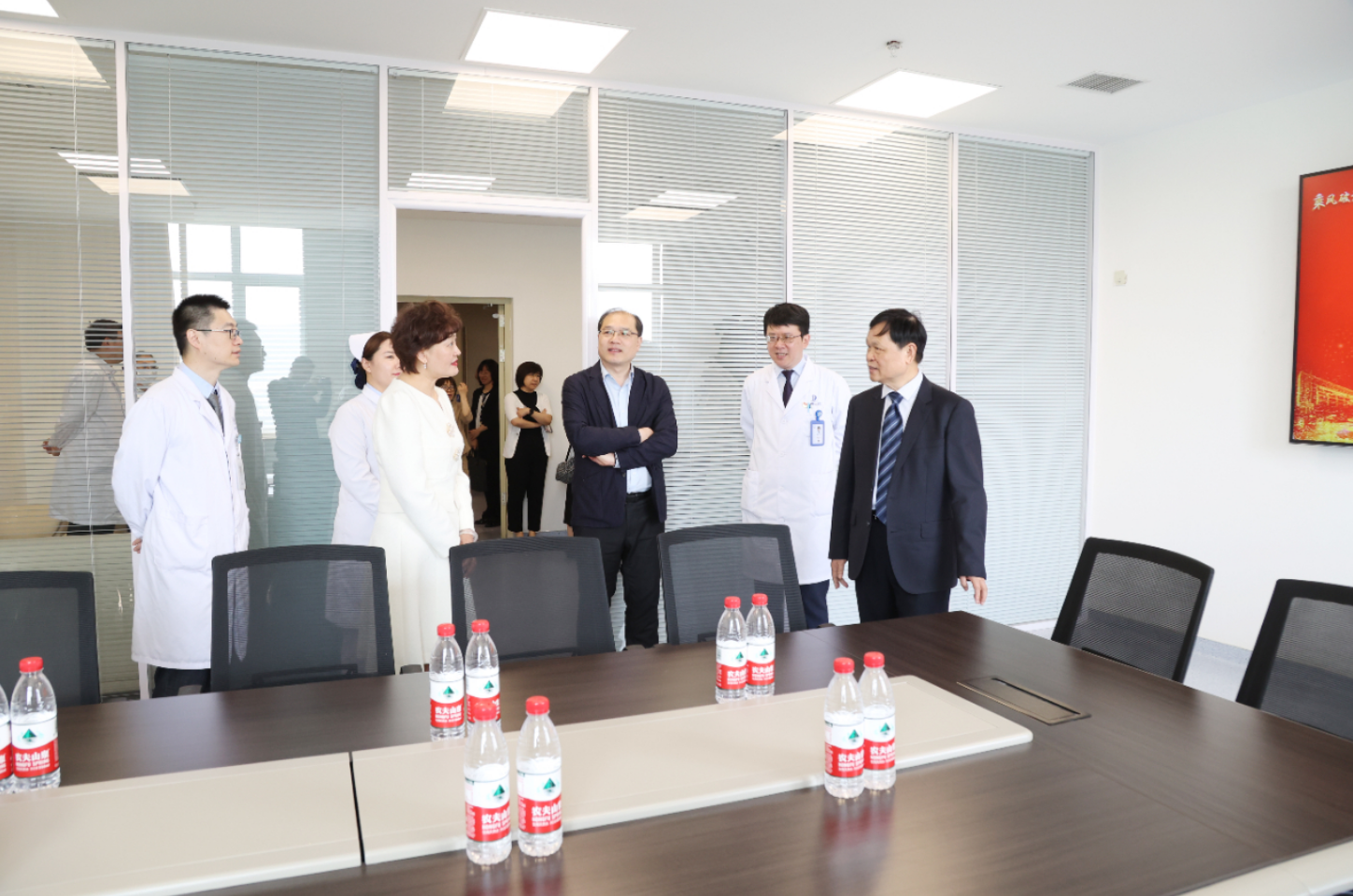 仪式结束后,与会领导、嘉宾一同前往Ⅰ期临床试验病房等区域参观,现场了解其规划及建设情况,并就医疗技术、临床研究能力水平提升等方面进行交流。