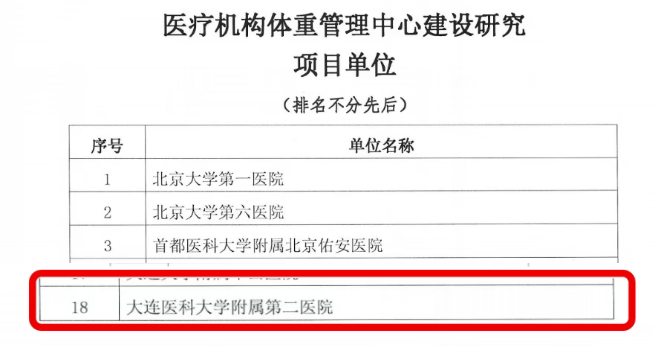 近日,国家卫生健康委医院管理研究所公布了“医疗机构体重管理中心建设研究重点项目单位”和“医疗机构体重管理中心建设研究项目单位”名单。大连医科大学附属第二医院从全国近600家申报单位中脱颖而出,获评“医疗机构体重管理中心建设研究项目单位”。据了解,本次评选,共有中国医学科学院北京协和医院等40家单位获评重点项目单位,北京大学第一医院等100家单位获评项目单位。