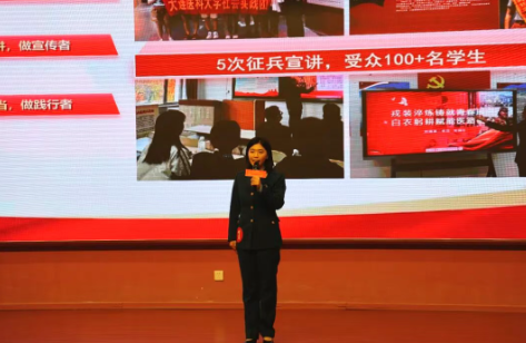本次擂台赛覆盖全校15个院系。蔡戎兵以《携笔从戎砺初心,笃行不怠践医路》为题,全面详尽汇报了思想成长、军旅淬炼、学业科研、学生工作与社会实践等方面的经历,展现了我院学子矢志报国、全面发展的精神风貌。他表示,将始终秉持“退伍不褪色”的信念,以军魂铸就担当,以实干践行医者使命,为新时代卫生健康事业贡献青春力量。柳婧怡以《褪戎装不忘担当,砺仁心再启征程》为题,从部队历练、学业成绩、综合素质等方面进行了阐述,展现了一名退役大学生重返校园后勤奋学习、不负韶华的奋斗精神。她表示,将继续发扬部队优良作风,以仁心守护健康,以奋斗书写青春。