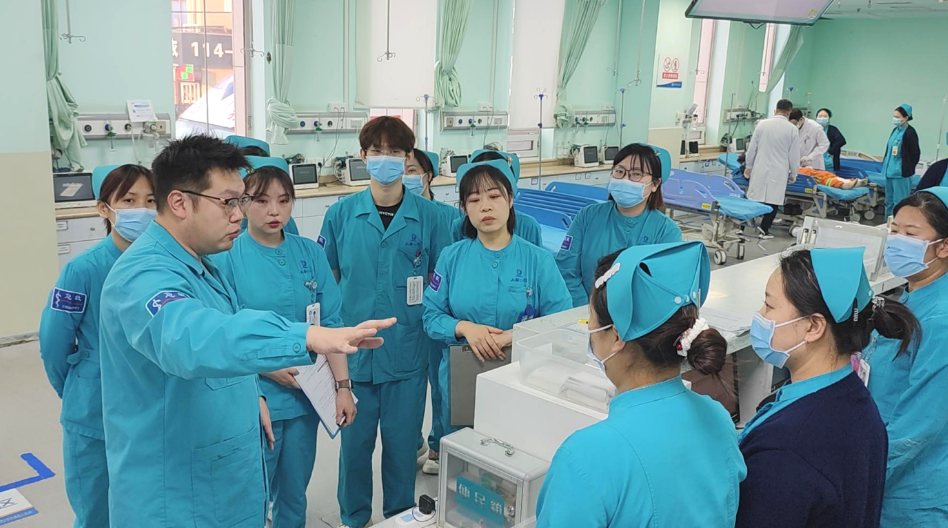 8时整,演练正式启动。急诊抢救大厅接120急救中心紧急来电:“XX路段发生大型车祸,11名伤员即将抵达,其中3人危重(含1名需心肺复苏患者)、4人重伤、4人轻伤,预计10分钟后陆续送达!”护理组长迅速确认伤情信息后,立即播报通知并上报科主任及护士长。杨初蔚主任即刻启动应急处置预案,医务部应急办同步调派神经外科、创伤骨科等多专科医生增援,联动手术室、CT室、急诊ICU、保卫部等科室(部门)做好应急准备;葛壮护士长立即上报护理部,快速组织支援护士到位并调配急救物资。