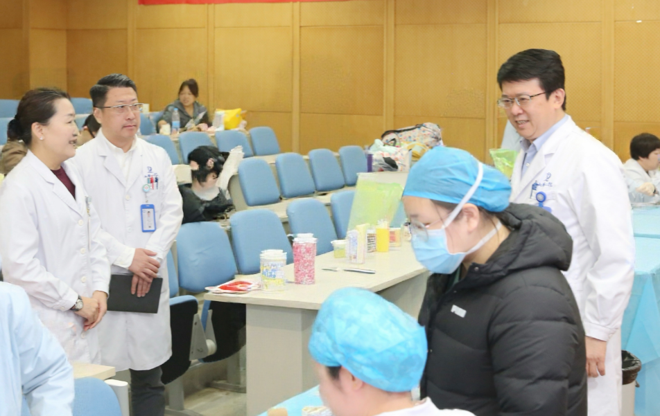 活动当日,尽管天气寒冷,献血现场却暖意融融。早上7点,疾病预防与医院感染控制部的工作人员与大连市血液中心专业团队已提前抵达现场,默契配合开展各项筹备工作:划分清晰的登记区、体检区、采血区、休息区依次就位,献血表格、血压计、采血设备等物资摆放整齐。工作人员们穿梭在各个区域,耐心为前来献血的职工讲解献血流程、健康注意事项及献血后的养护知识,用专业的服务和饱满的热情为活动保驾护航。