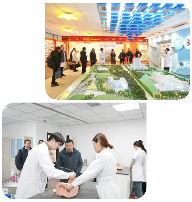 随后,那曲市人民医院一行人共同参观了我院的院史馆、临床技能教学中心等地。