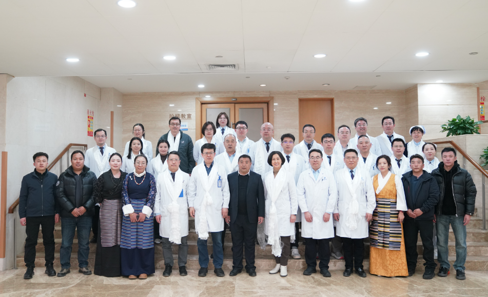 任萍书记代表医院向跨越千里来访的那曲市人民医院同仁致以热烈欢迎。她指出,自2001年启动援藏工作以来,医院累计派出35名医疗和管理骨干,前后三位干部担任那曲市人民医院院长,在海拔4500米的极地高原书写了24载“缺氧不缺精神”的奋斗篇章。她强调,这段跨越山海的情缘不仅是技术人才的单向输送,更是双方在管理智慧、技术融合和人文精神等方面的双向奔赴、共同成长,双方在神经外科急诊能力构建、胸腔镜技术突破、影像技术落地、5G远程机器人手术等标志性成果中共同铸就了“世界屋脊”上的生命奇迹。她对援藏干部的工作如数家珍,一一细数了援藏干部扎根高原取得的技术突破、对管理理念与体系的重构、从“输血”到“造血”的切实努力。援藏干部也在援助过程中经受锻炼得到成长,袁亮、郑皖亓医生荣获“中国好医生”,大部分干部返连后都承担起重要岗位职责,为医院的高质量发展奠定坚实基础。她表示,此次那曲同仁回访是亲情再续、共启新程的起点,两院将以远程医疗、科研协作、专科共建为纽带,为雪域高原医疗卫生事业和各族人民健康福祉贡献力量。