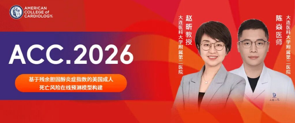 心内五科赵昕主任团队成员陈焱博士投稿的研究“Development of an Online Risk Calculator Based on the Remnant Cholesterol Inflammatory Index to Predict Mortality in U.S. Adults: A Population-Based Study”入选ACC.26心血管疾病预防主题,并进行壁报展示。